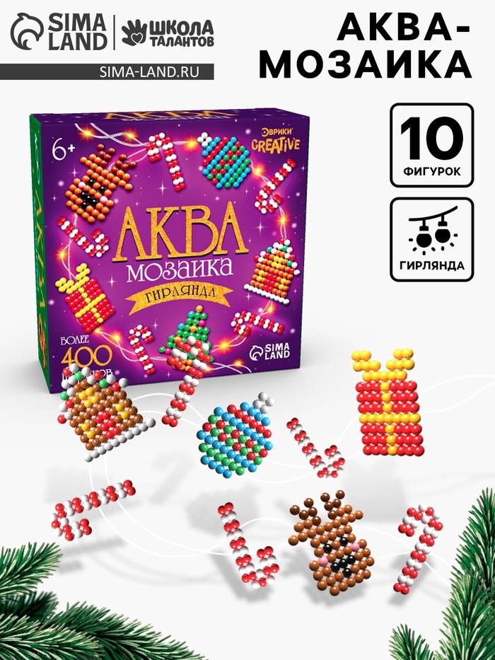 Аквамозаика детская «Новогодняя гирлянда своими руками», 6 схем, 400 шариков