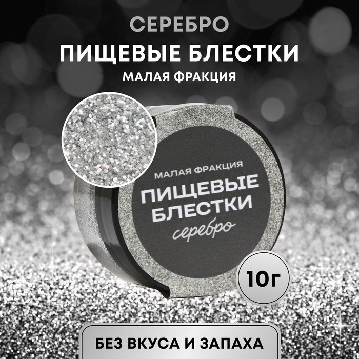 Блёстки пищевые КондиМир малой фракции, серебро, 10гр