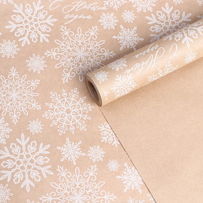 Бумага крафтовая в рулоне «Снежинки», 0.68*7м