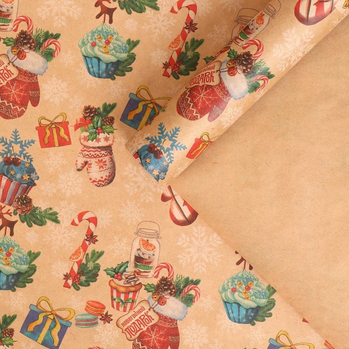 Бумага упаковочная новогодняя крафтовая «Вкусный праздник», 50*70см