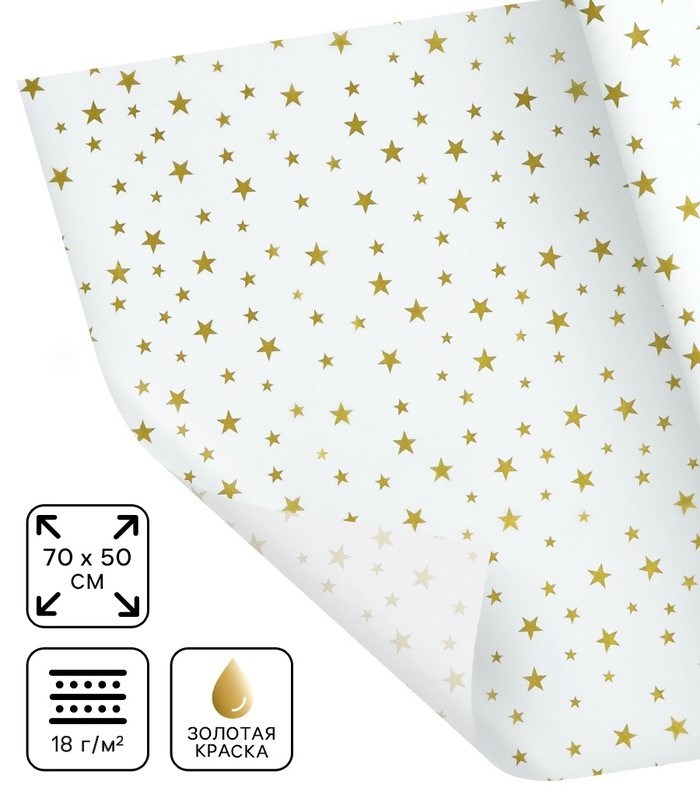 Бумага упаковочная тишью «Звезды, золото», 50*70см
