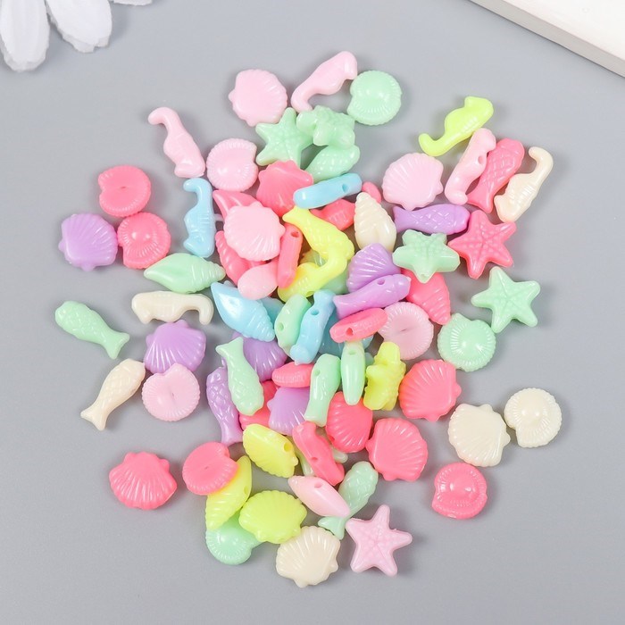 Бусины д/творчества пластик «Морские. Пастельные тона», н-р 78шт, 15гр, 1*1см