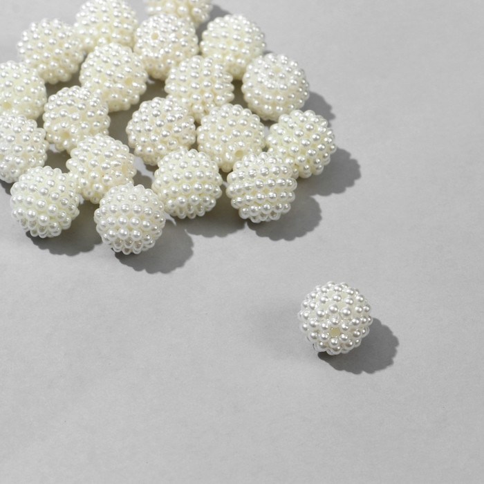 Бусины пластиковые «Жемчуг», шарик, d1см, н-р 10гр, белые