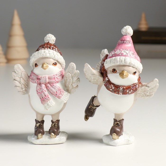 Фигурка полистоун «Птенчик в шапке и шарфике, на коньках», 9.5*7.5*15см, 1шт