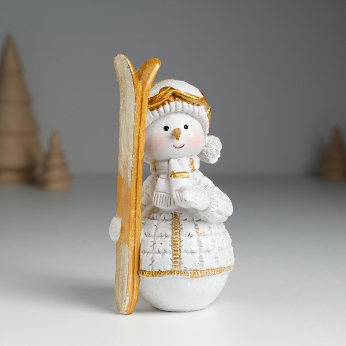 Фигурка полистоун «Снеговик лыжник в бело-золотом наряде», 5.5*5*10.2см