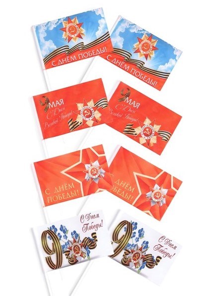 Флаг «9 мая», 14*22см, полиэфирный шелк, с древком, 1шт