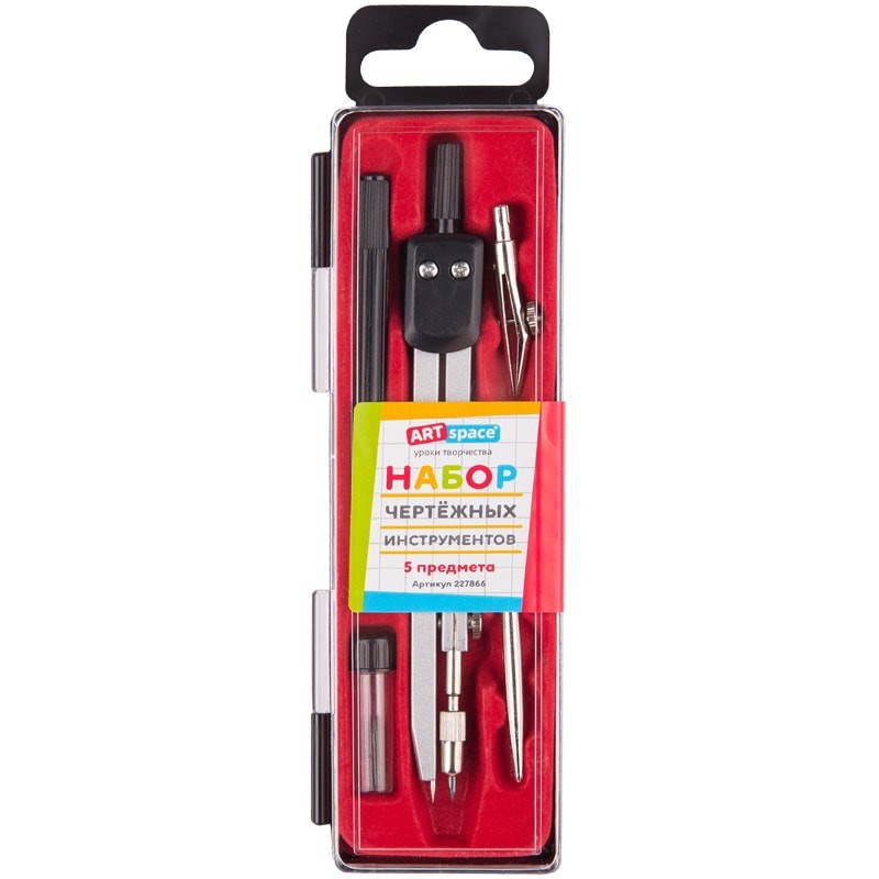 Готовальня 5 предметов, пластик футляр