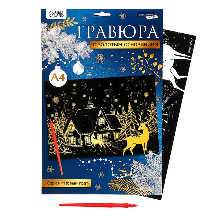 Гравюра «Зимний пейзаж», с золотым эффектом, А4