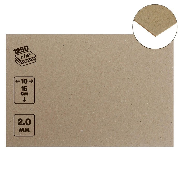 Картон переплётный (обложечный) 2.0мм, 10*15см, 1250г/м², серый