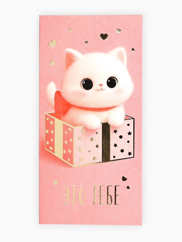 Конверт д/денег «Это тебе», котик, тиснение, 16.5*8см