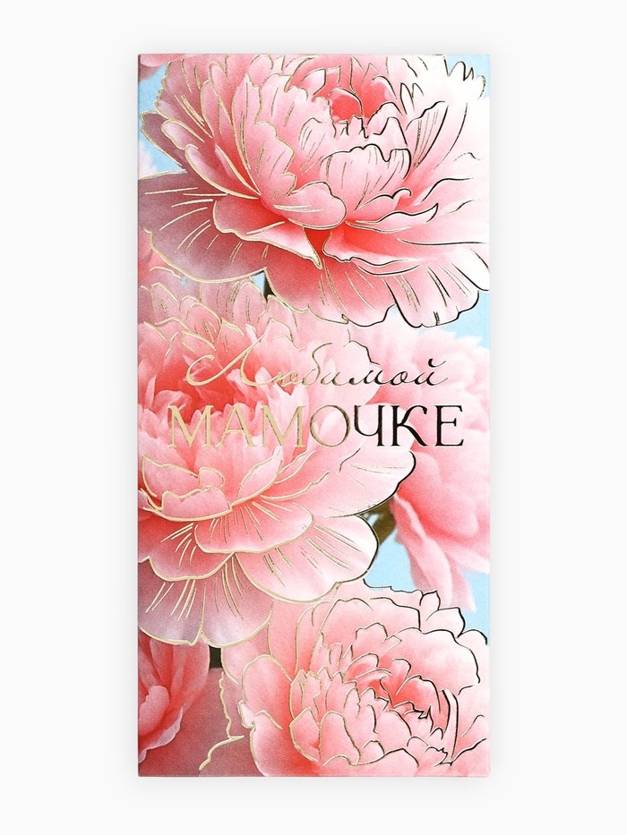 Конверт д/денег «Любимой мамочке», пионы, тиснение, 16.5*8см