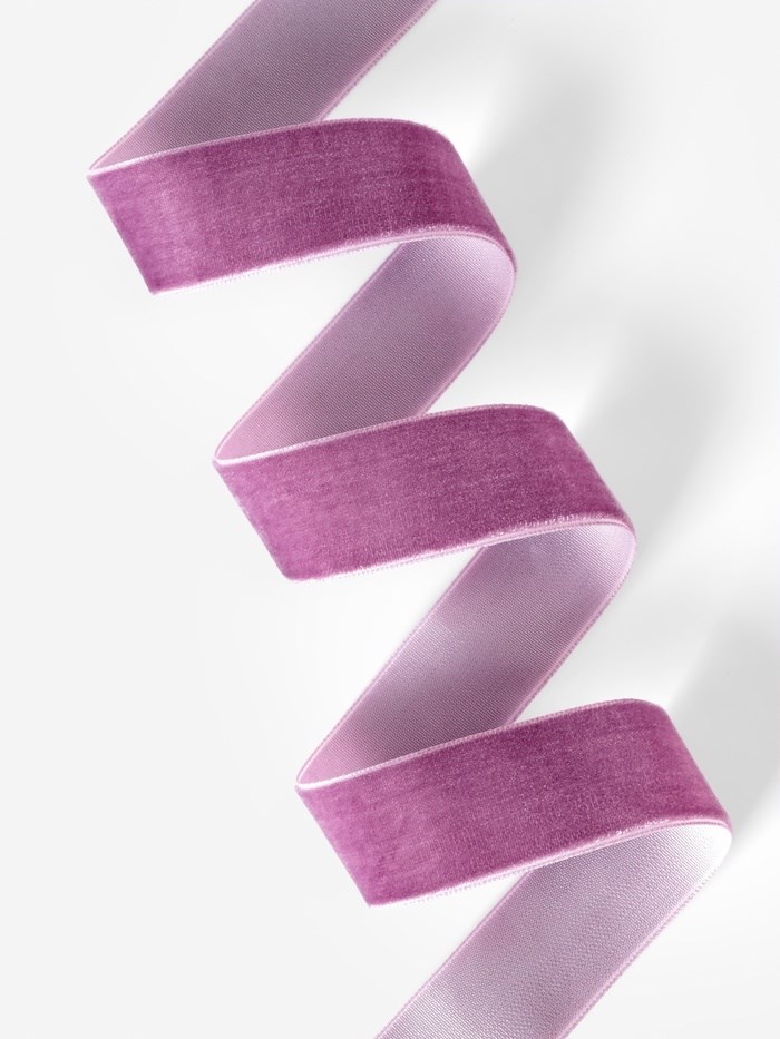 Лента бархатная, 25мм,1м, сиреневая №199