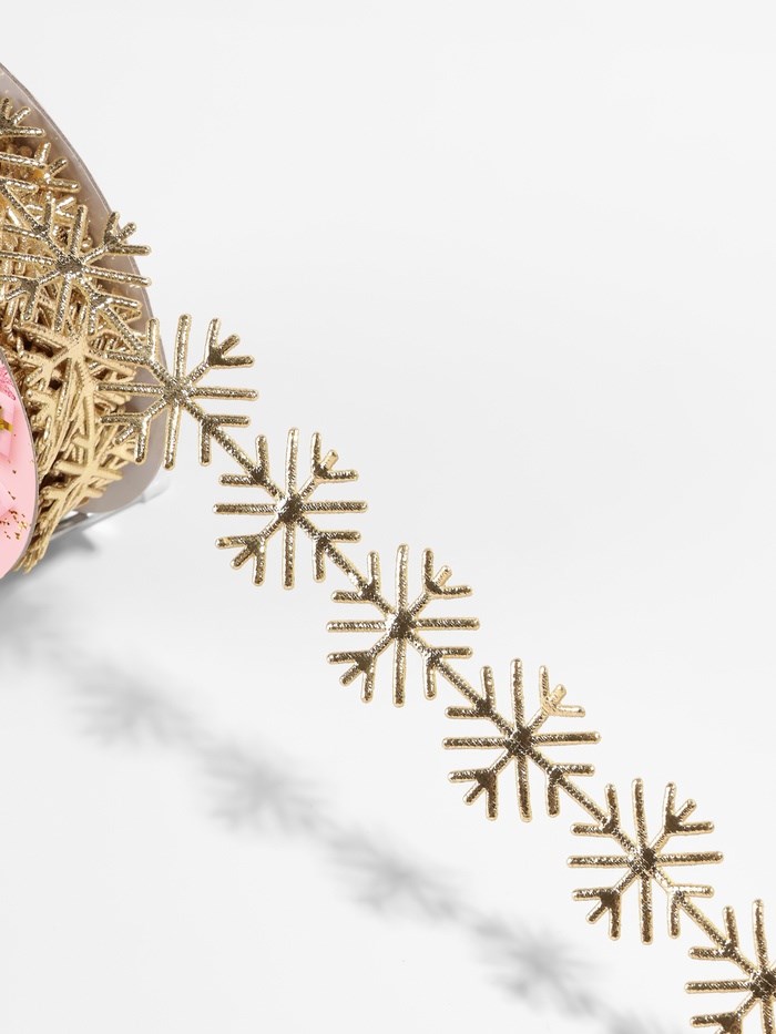 Лента декоративная, фигурная «Золотистые снежинки» 22мм, 1м