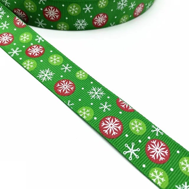 Лента подарочная репс "Снежинки на зеленом" 2,5 см, 1 м