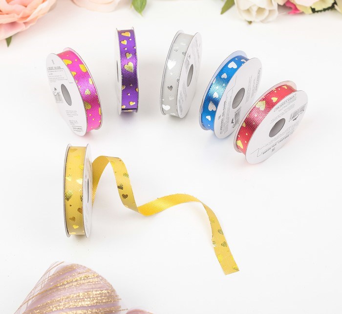 Лента упаковочная д/декора и подарков, сердца, МИКС, 1.2см*5м 1шт