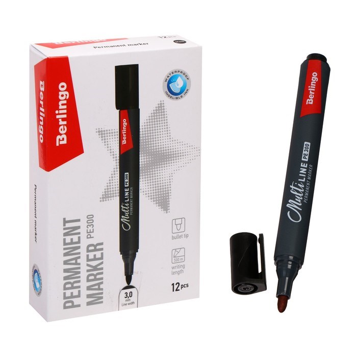 Маркер перманентный 3.0мм, Berlingo Multiline PE300, пулевидный, черный