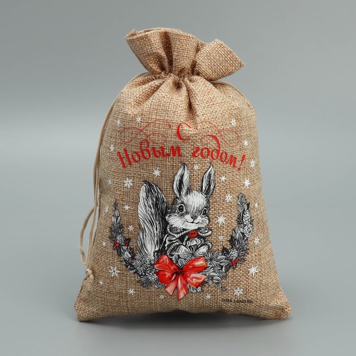 Мешочек новогодний подарочный с термонаклейкой «Белочка», 16*24см