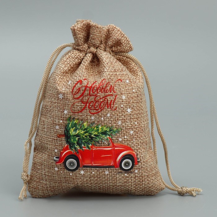 Мешочек новогодний подарочный с термонаклейкой «Спешу к тебе», 10*14см