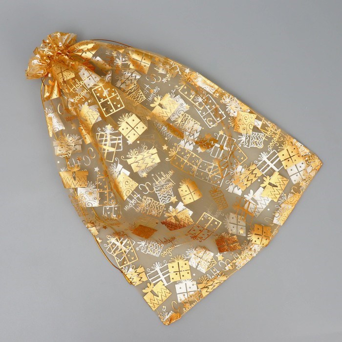 Мешочек подарочный новогодний органза «Золотые подарочки», 30*40см