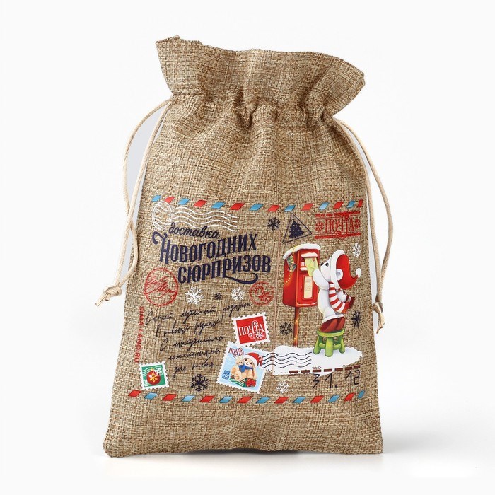 Мешочек подарочный с термонаклейкой «Новогодняя почта», 16*24см