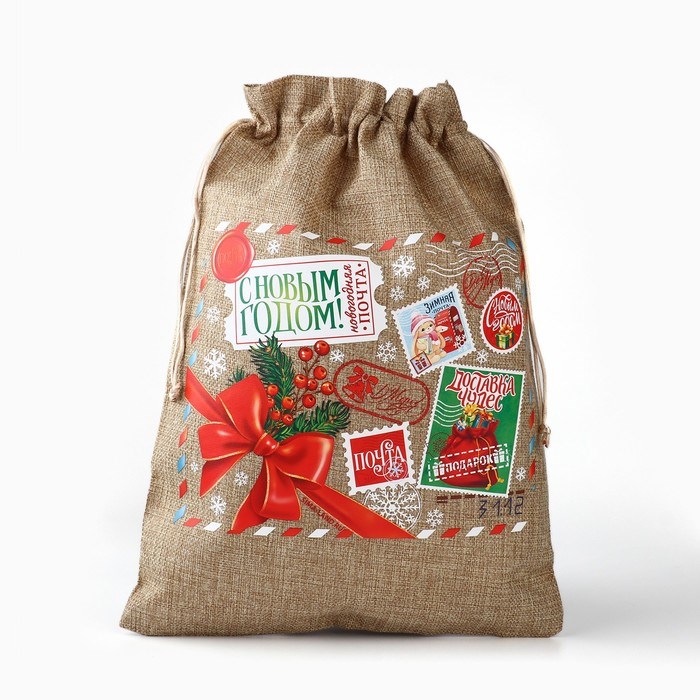 Мешочек подарочный с термонаклейкой «Новогодняя почта», 30*40см