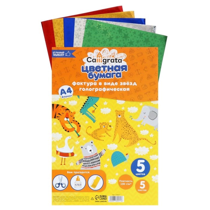 Н-р бумаги голографической "Звезды" А4, 5л, 5цв, рисунок, 100 г/м2