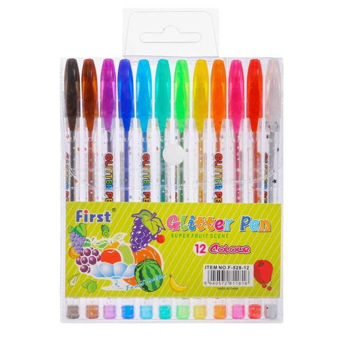 Н-р гелевых ручек, 12цв, металлик, корпус с рисунком, в блистере на кнопке