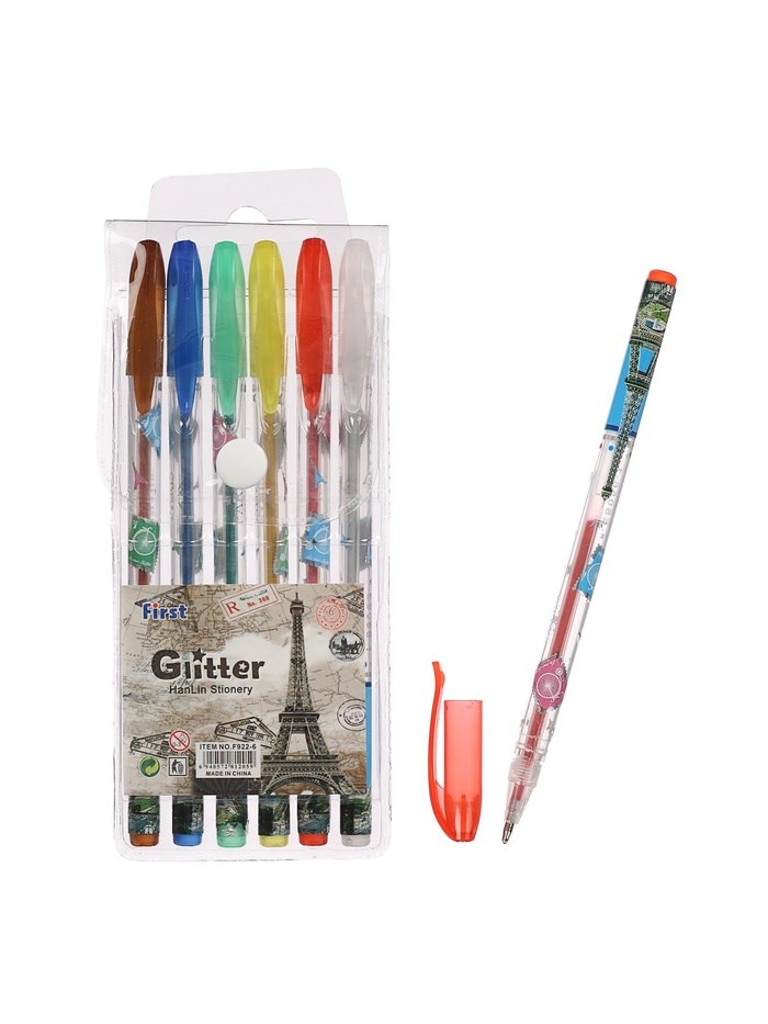 Н-р гелевых ручек, 6цв, металлик, с блёстками, в блистере