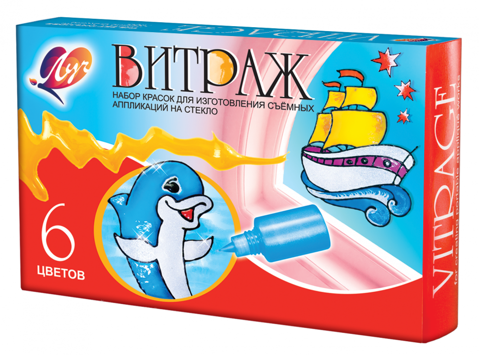 Н-р красок д/изготовления съемных аппликаций Витраж 6цв*20мл УЦЕНКА