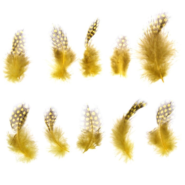 Н-р перьев д/декора 10шт, размер 1 шт: 5*2см, жёлтый с коричневым