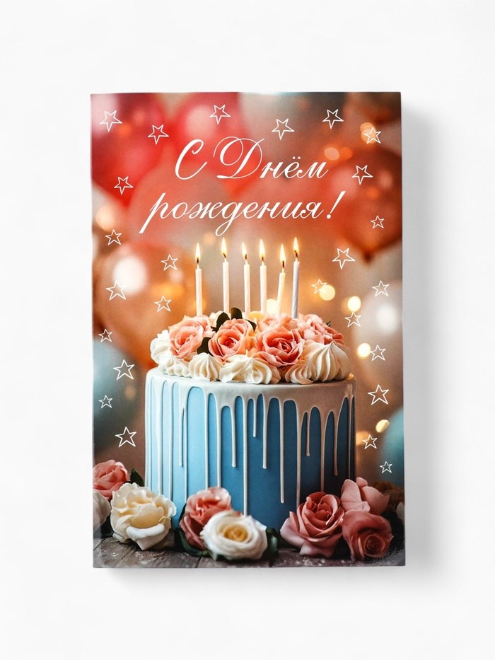 Открытка поздравительная «С днём рождения», 19*29см, торт