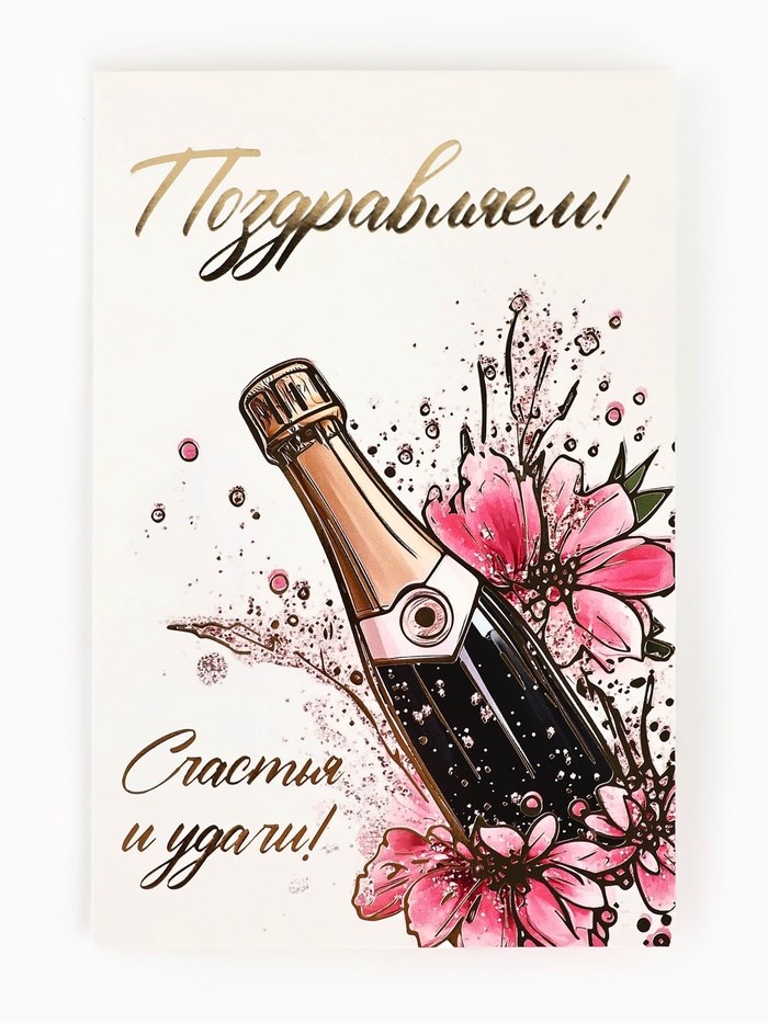 Открытка «С днём рождения», тиснение, 12*18см, шапманское