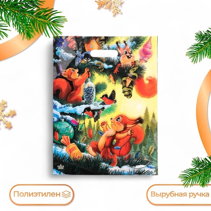 Пакет новогодний новогодний «Три бельчонка», полиэтиленовый с вырубной ручкой, 40*31см
