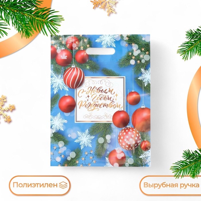 Пакет подарочный новогодний «Шарики и фонарики», полиэтиленовый с вырубной ручкой, 40*31см