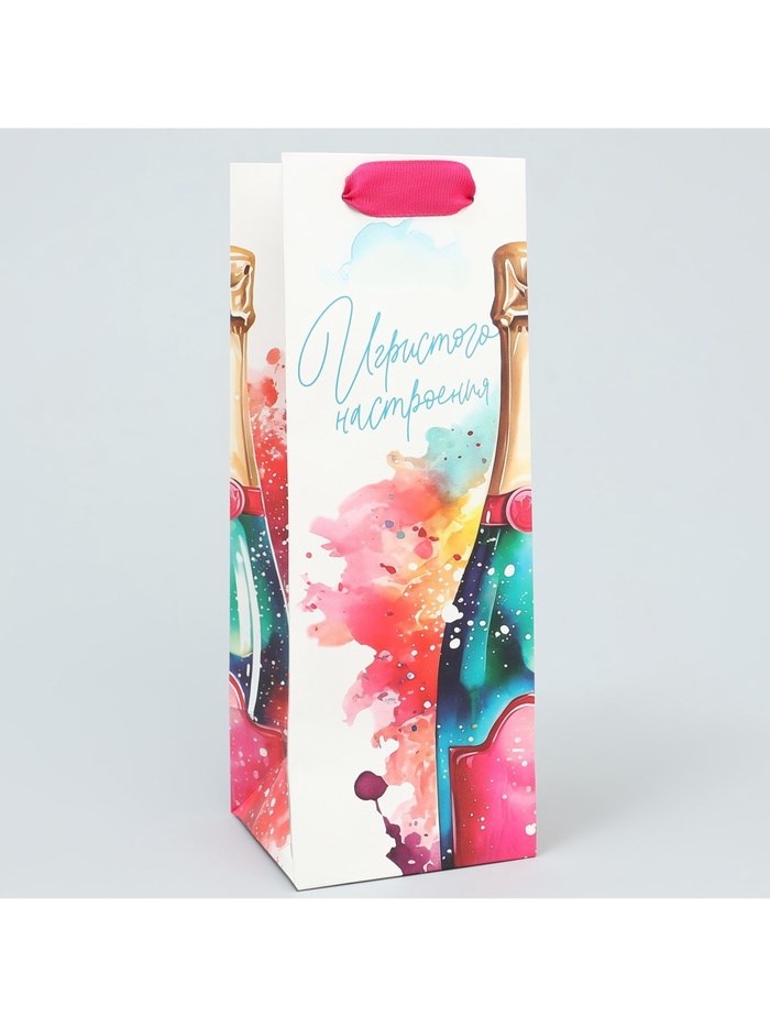 Пакет подарочный под бутылку, «Игристое настроение», 9*25*8.5см