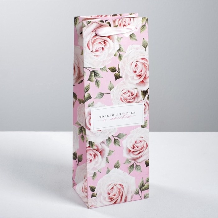 Пакет подарочный под бутылку, «Только д/тебя с любовью », 35*13*10см