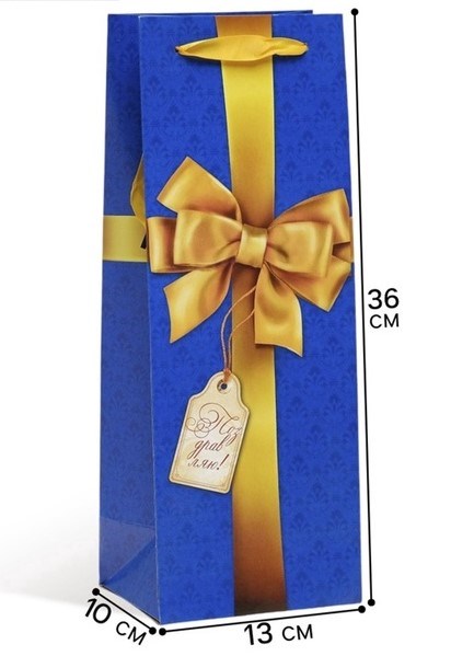 Пакет подарочный под бутылку, упаковка, «С бантом», 36*13*10см