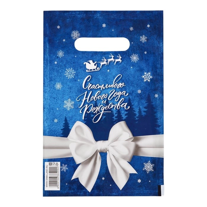 Пакет «Счастливого нового года и рождества», полиэтиленовый с вырубной ручкой 20*30см