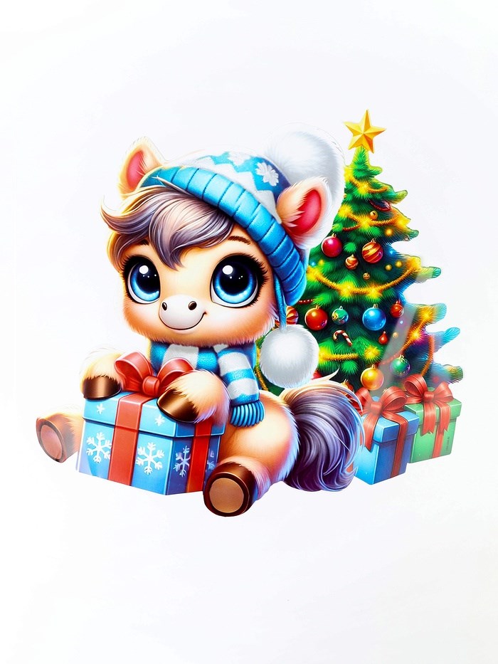 Плакат новогодний «С новым годом», лошадка у ёлки, 43.3*43.9см