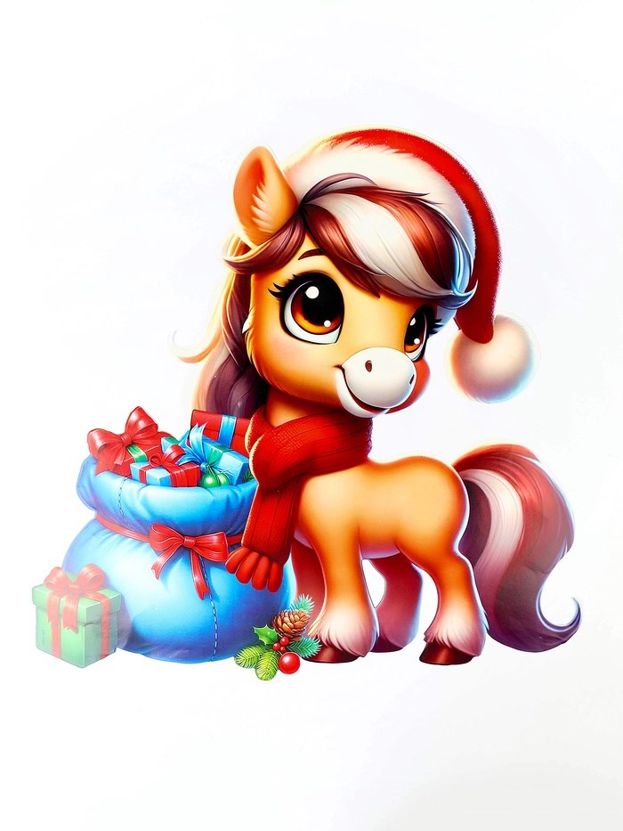 Плакат новогодний «С новым годом», лошадка у подарка, 48.2*27.9см