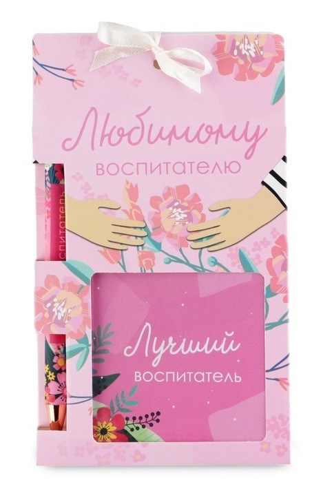 Подарочный н-р, блокнот 125л и ручка пластик, синяя паста 0.7мм «Любимому воспитателю»