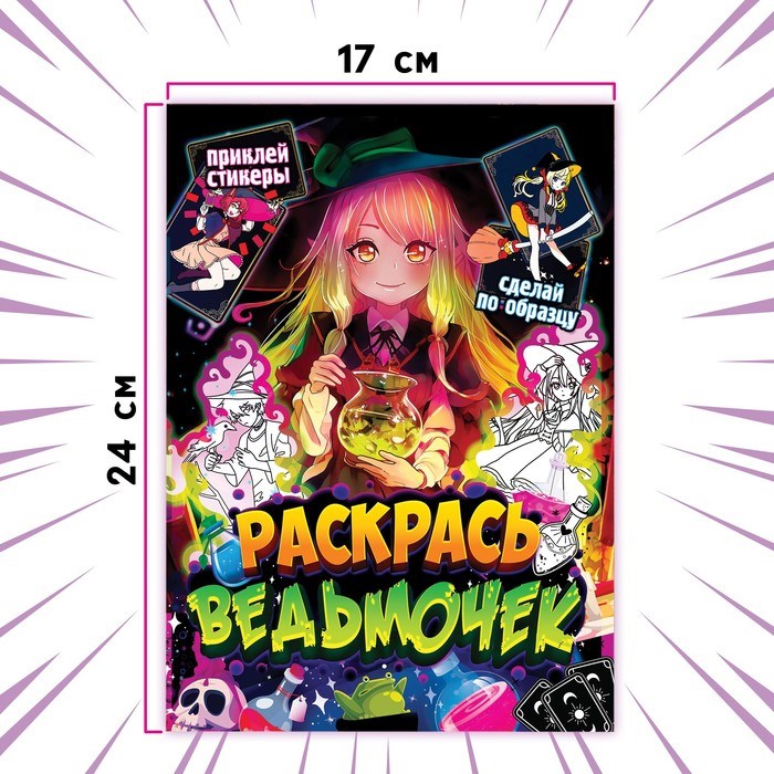 Раскраска по образцу с наклейками «Раскрась ведьмочек», 16стр, Аниме
