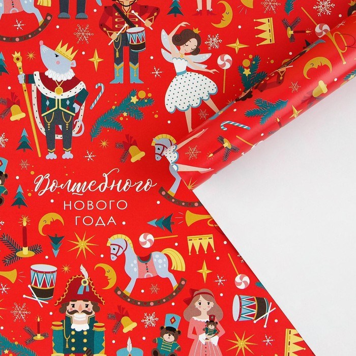 Упаковочная бумага на новый год «Щелкунчик», 70*100см, глянцевая