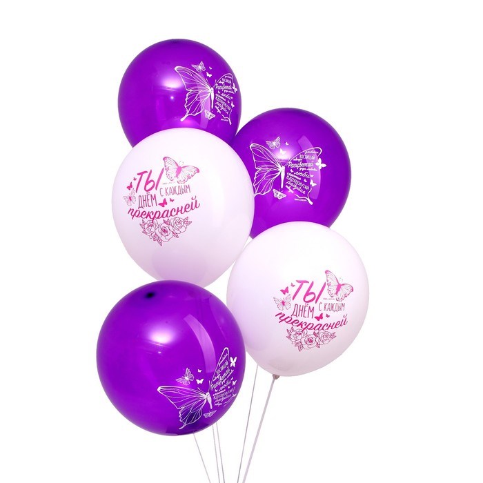 Воздушные шары латексные 12" «Бабочки», 5шт