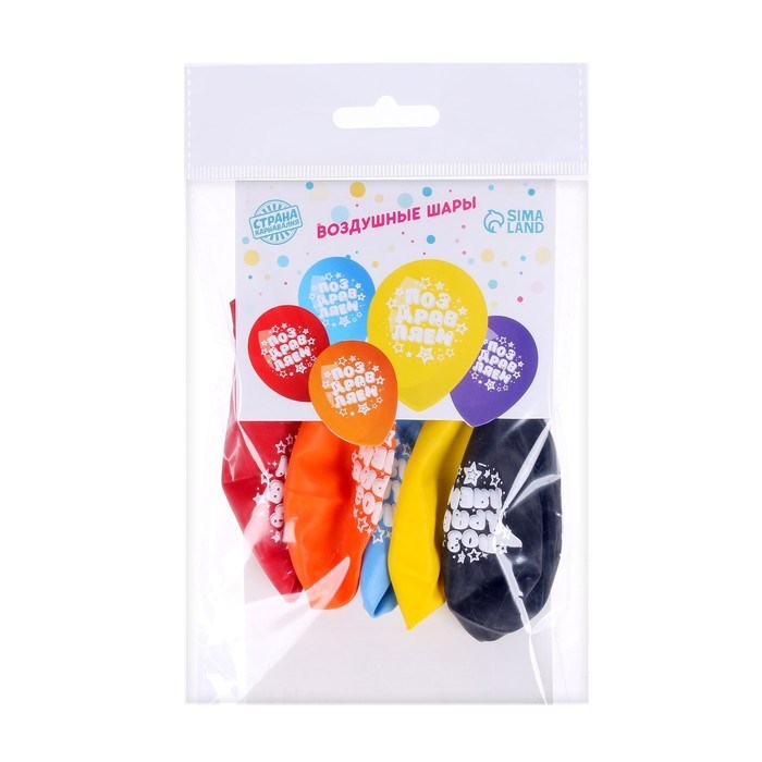 Воздушные шары латексные 12" «Поздравляем», 5шт