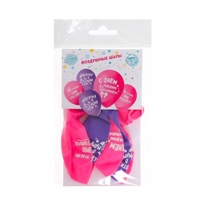 Воздушные шары латексные 12" «С днём рождения, доченька», 5шт