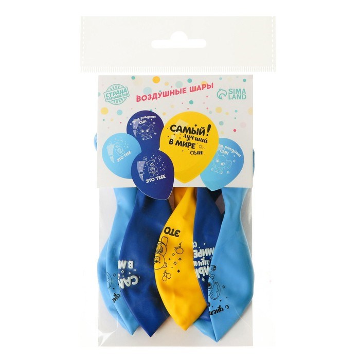 Воздушные шары латексные 12" «С днем рождения, сын», 5шт