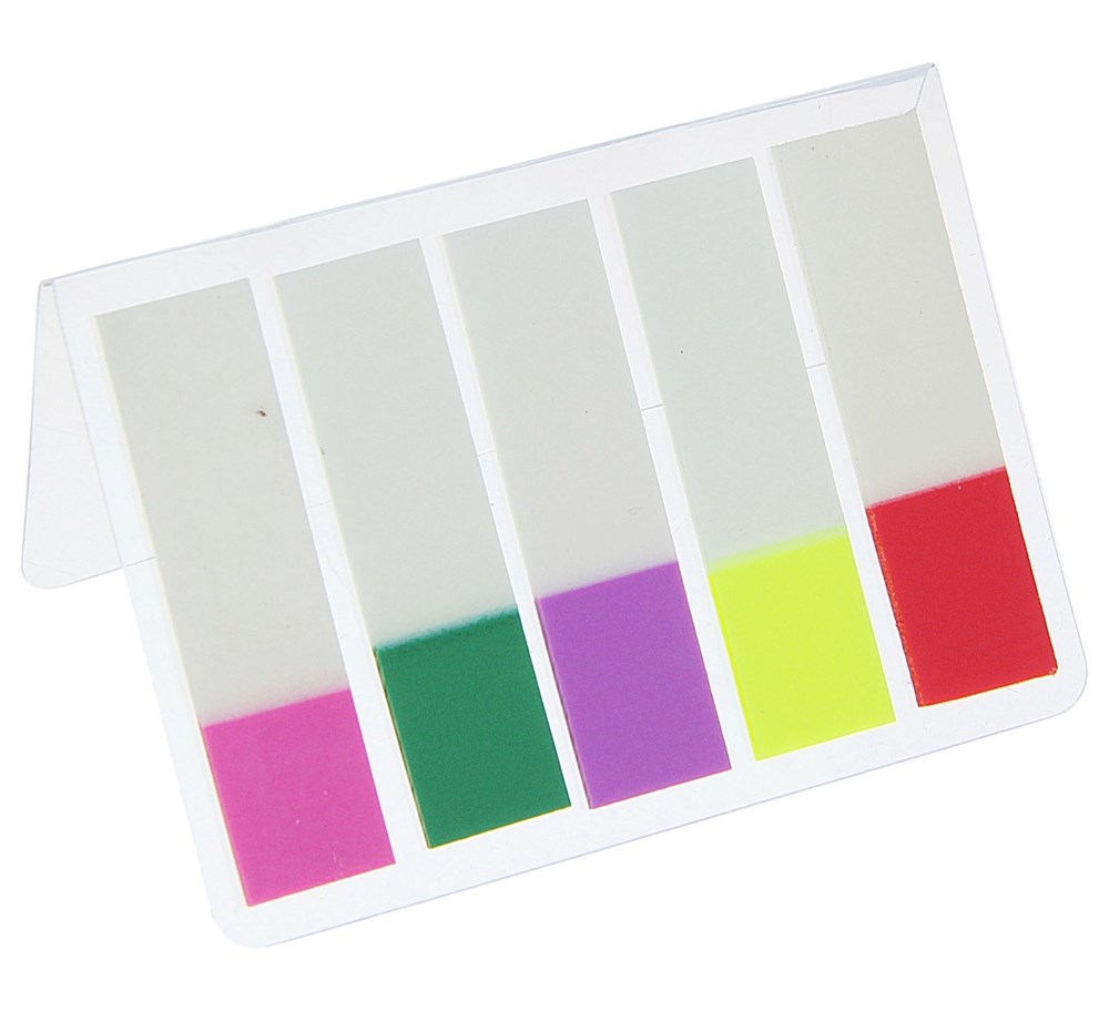 Закладки с клеевым краем, пластик, 25x44мм, 5цв/20л, МИКС
